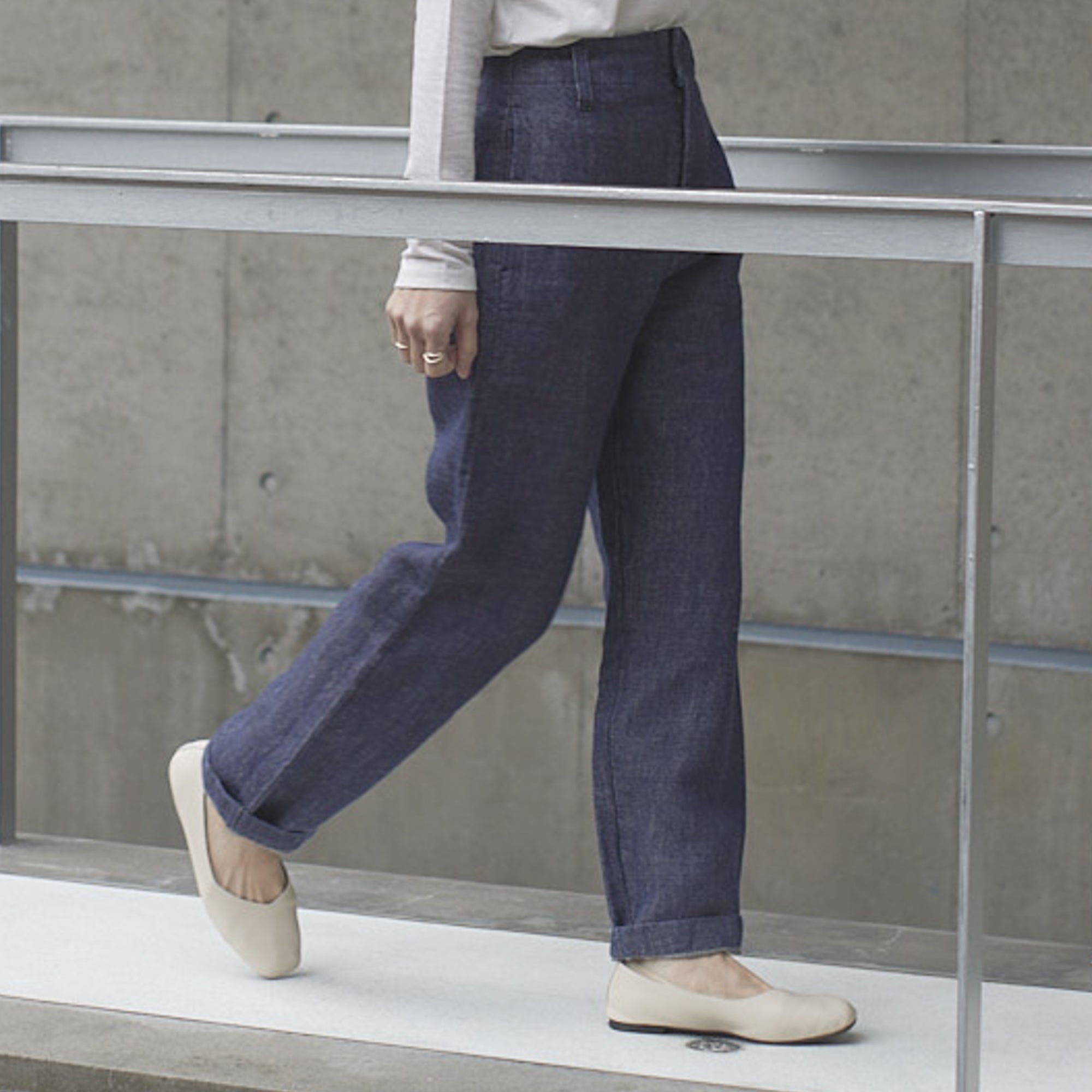 ヘンプ100%素材は「張り」と「腰」と「光沢」があり、とても柔らかな手触りに仕上げています。その風合いは、お袖と裾周りの柔らかな美しいシルエットを演出。裾周りのドレープ感は、とてもエレガント。