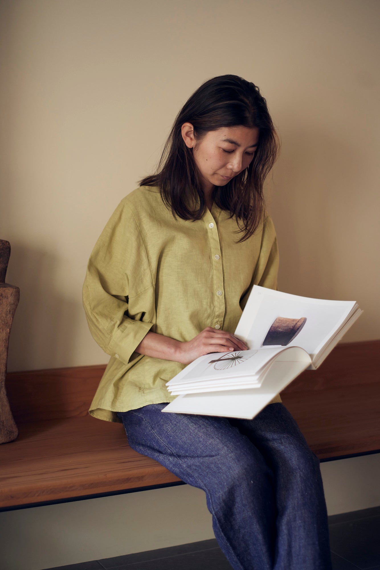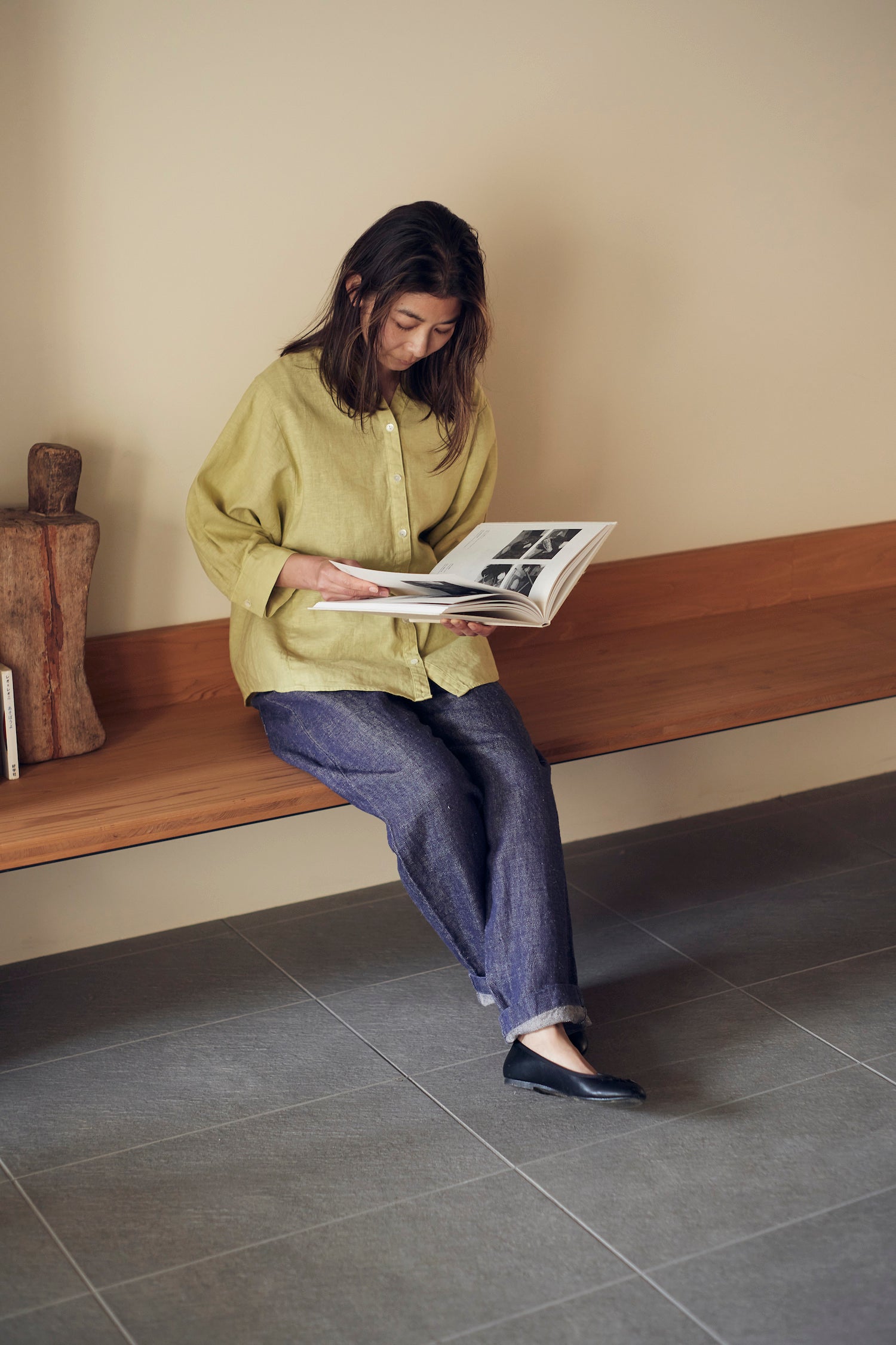 アートを通して自身と向き合う大切なルーティンに、共に過ごすLiloopの前開きブラウスはナチュラルな表情と自然な優しさを演出するシルエット。ヘンプ100%デニムパンツの存在感はトップスを引き立てます。