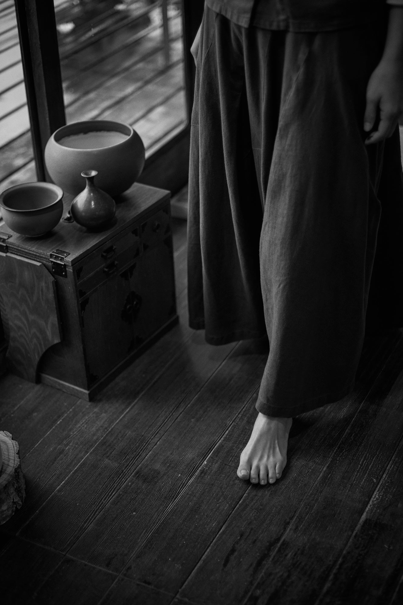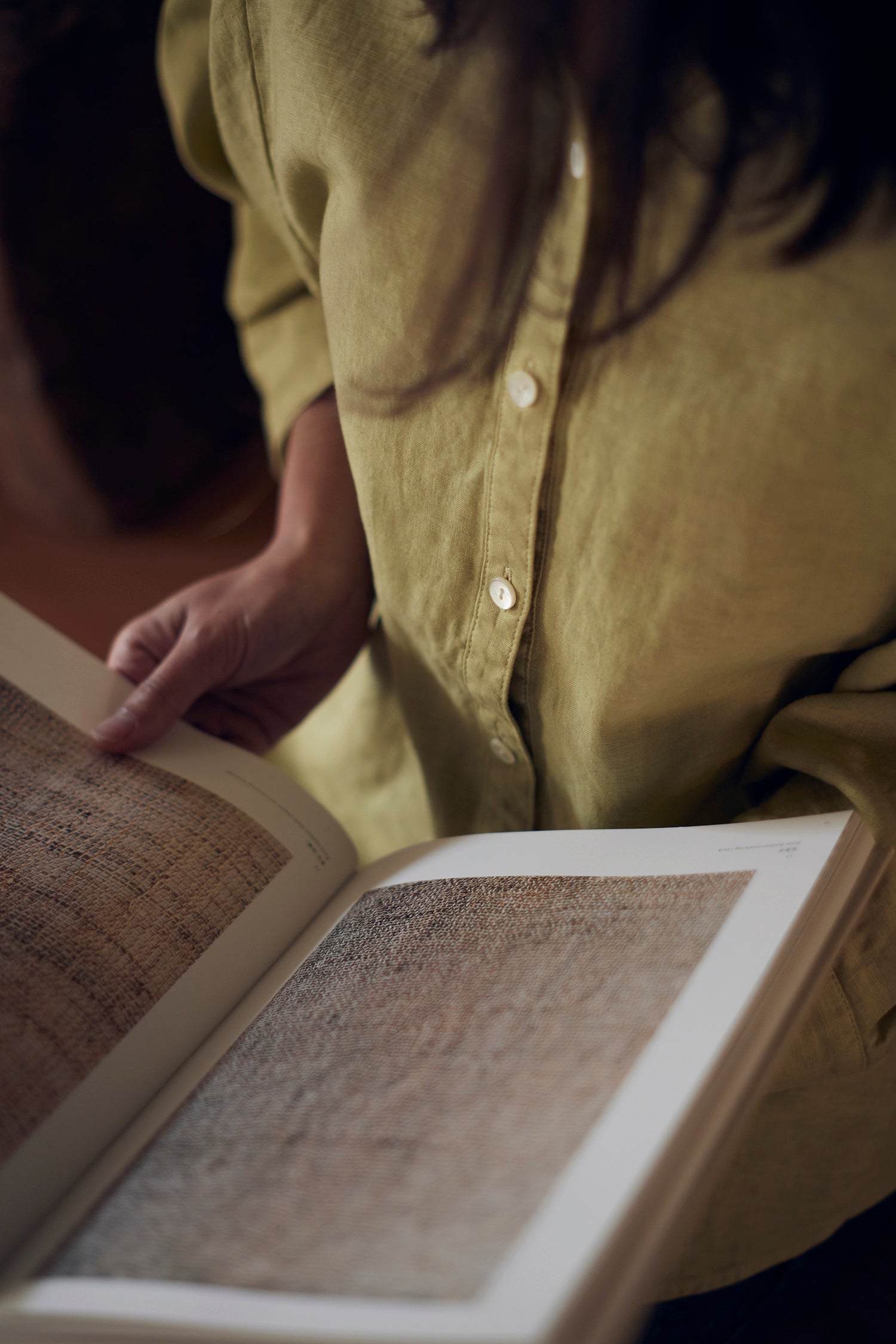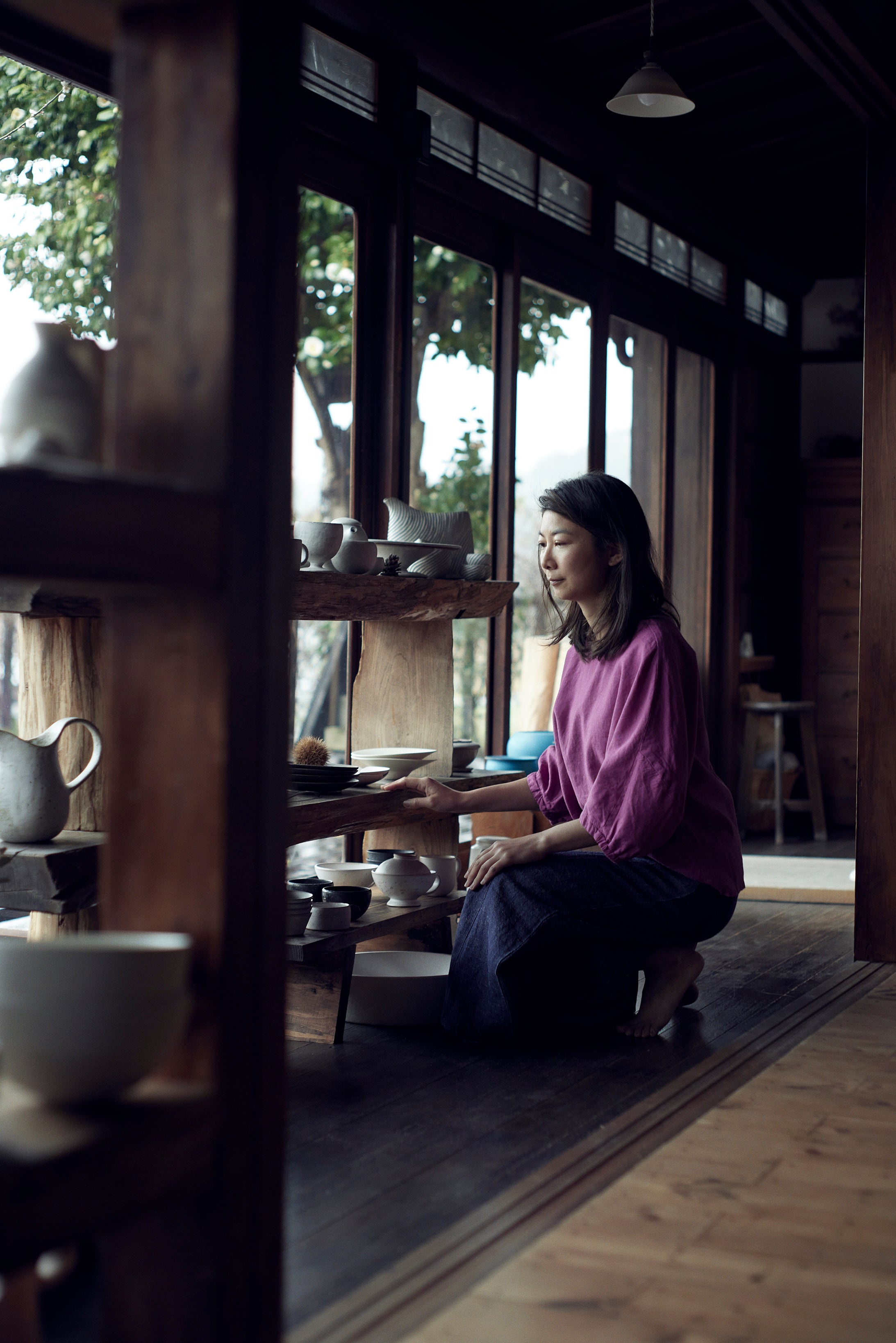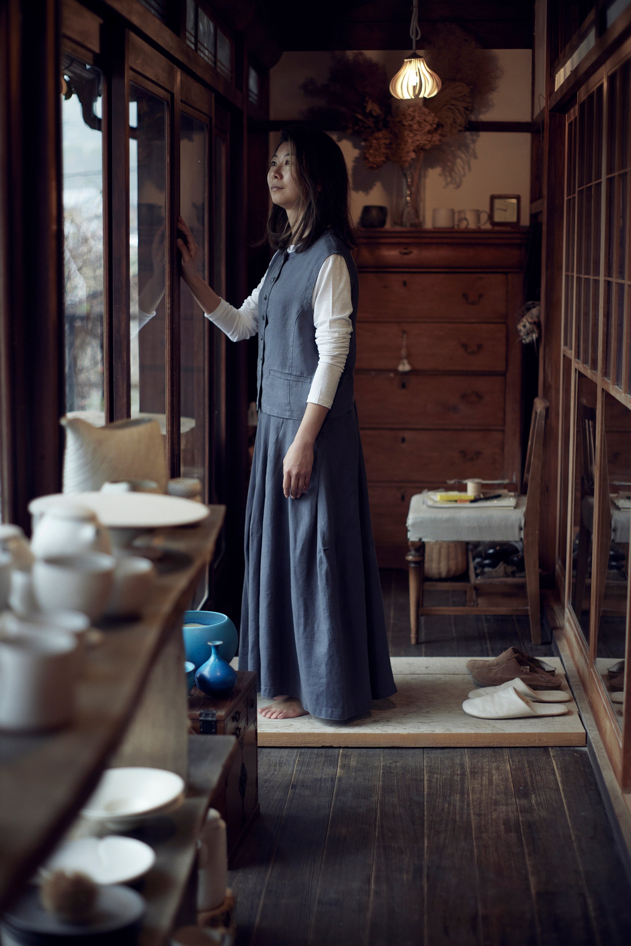 土に向かい素の自分に戻る時間。さらに進化したヘンプ素材Advanced Hempのフェザーブラウス。しなやかで軽く柔らかな素材から生み出される、極上の肌触り。陶芸の先生がまとう凛とした光沢のあるヘンプワンピース。自然環境を再生する素材の心地良さに囲まれて、日々の暮らしに格別なケアを。