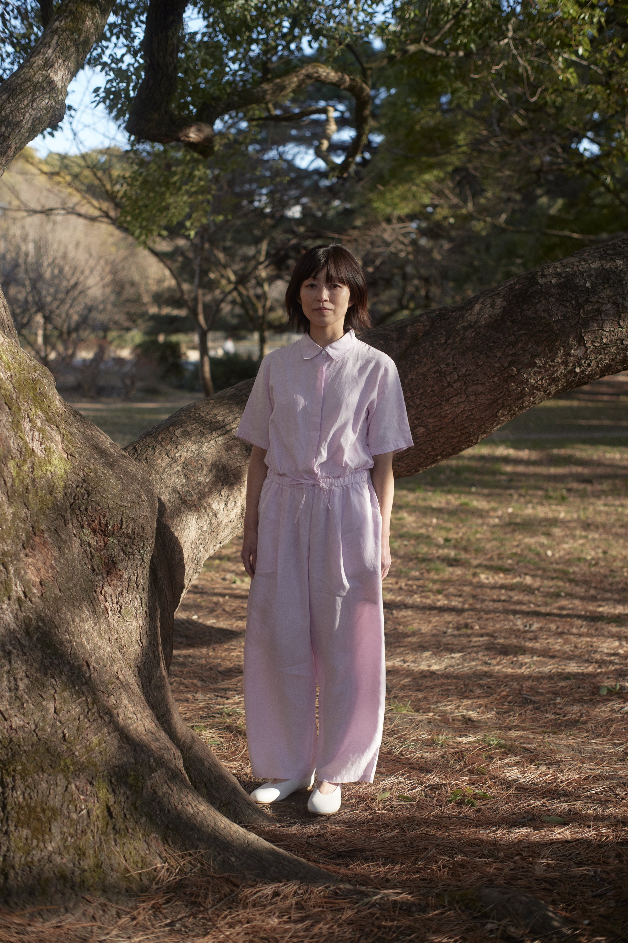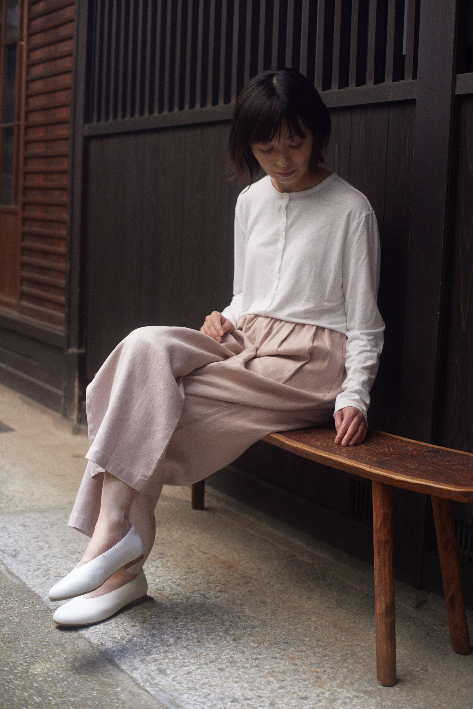 心地よく、動くたび女性らしい余韻を残すストレートパンツ
