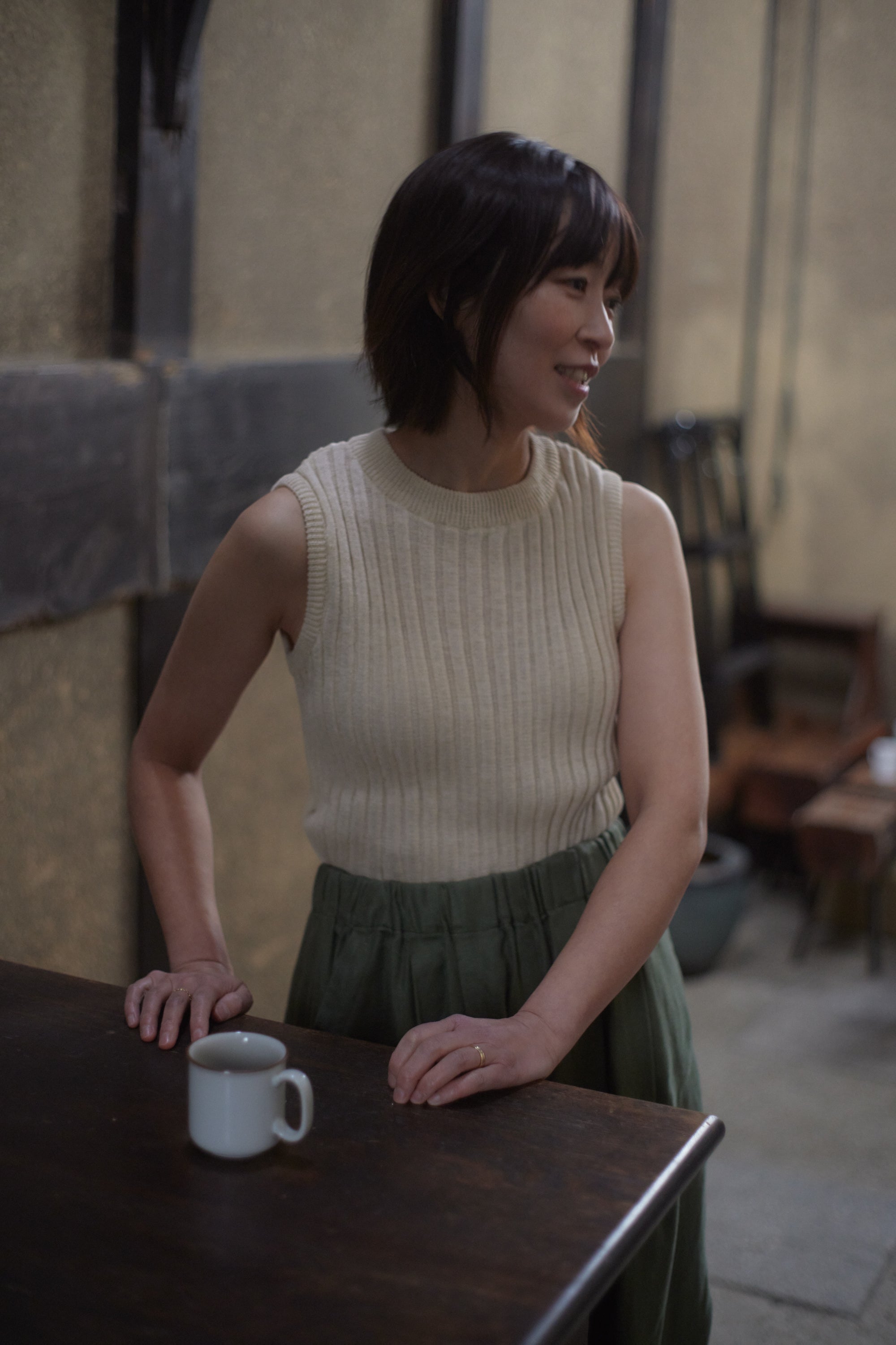 しっとりとした質感のキャミソール、知的な印象のワイドパンツは、コーデを選ばない万能アイテム。植物繊維の優しさが、肌に触れるたびに贅沢な心地よさをもたらします。カーディガンを羽織れば、リラックス感のある上質なスタイルに。シルバーアクセサリーとヌーディなサンダルを合わせて、洗練された都会のムードを演出。