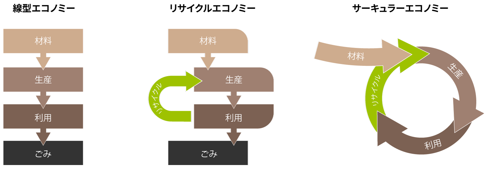 サーキュラーエコノミーとは、「循環型経済」とも呼ばれる未来志向の経済システムのこと。従来の”大量生産・大量消費・大量廃棄”による経済成長が頭打ちとなり、気候変動や資源枯渇の危機に瀕するなか、これまで廃棄されてきたあらゆる製品や原材料を「資源」として再活用することで、永続的に循環させていくものです。